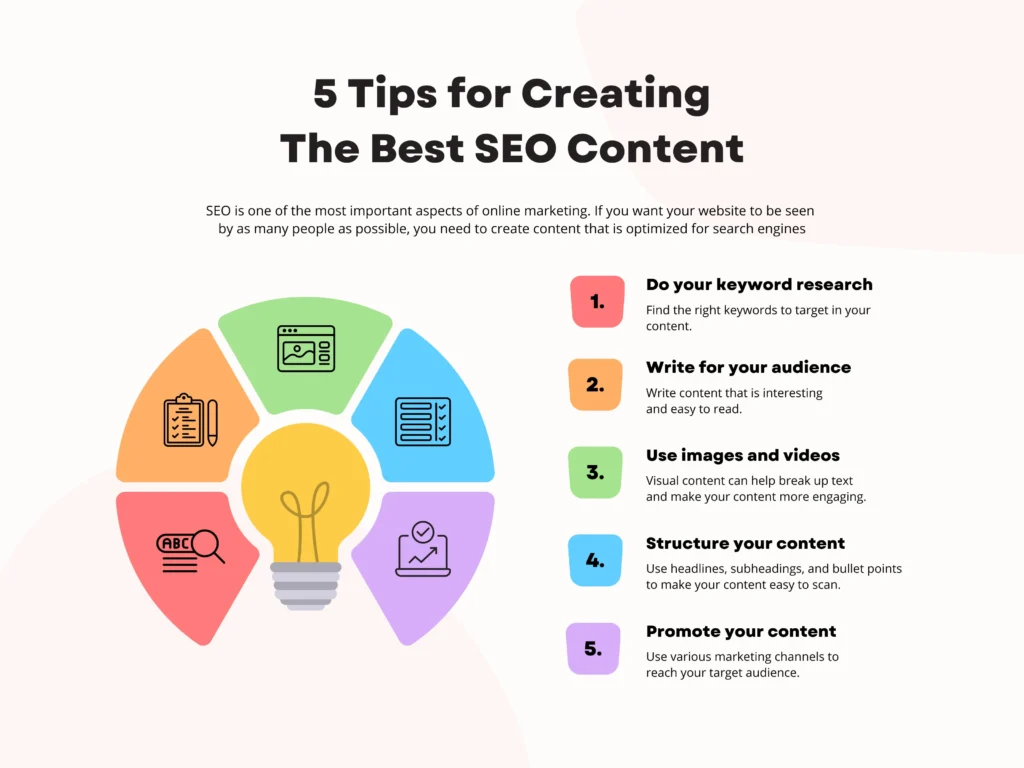 - Content writing is a cornerstone of SEO. By creating high-quality, keyword-optimized content, businesses can rank higher on search engines like Google. This leads to increased visibility and more traffic to their websites.